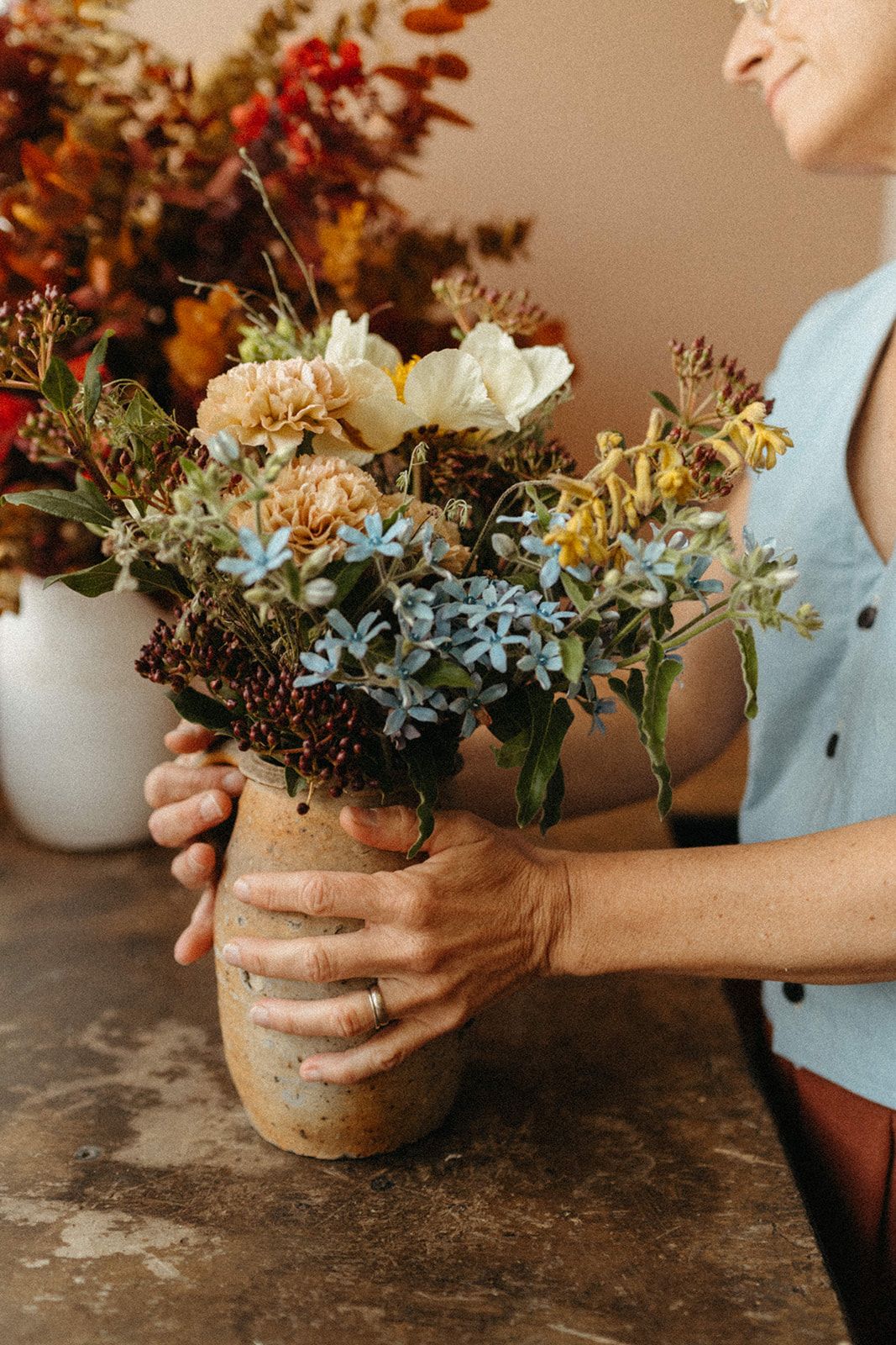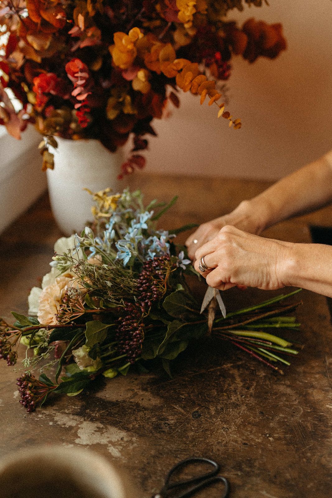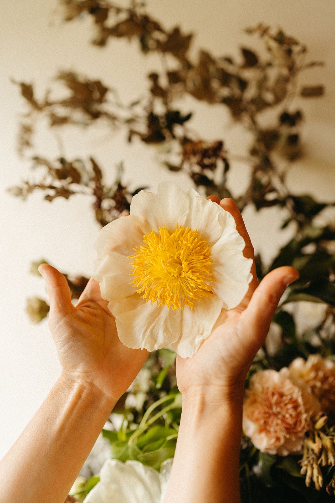 I design bespoke floral settings for weddings, share my knowledge through teaching, and create with the seasons – celebrating nature with care and respect.