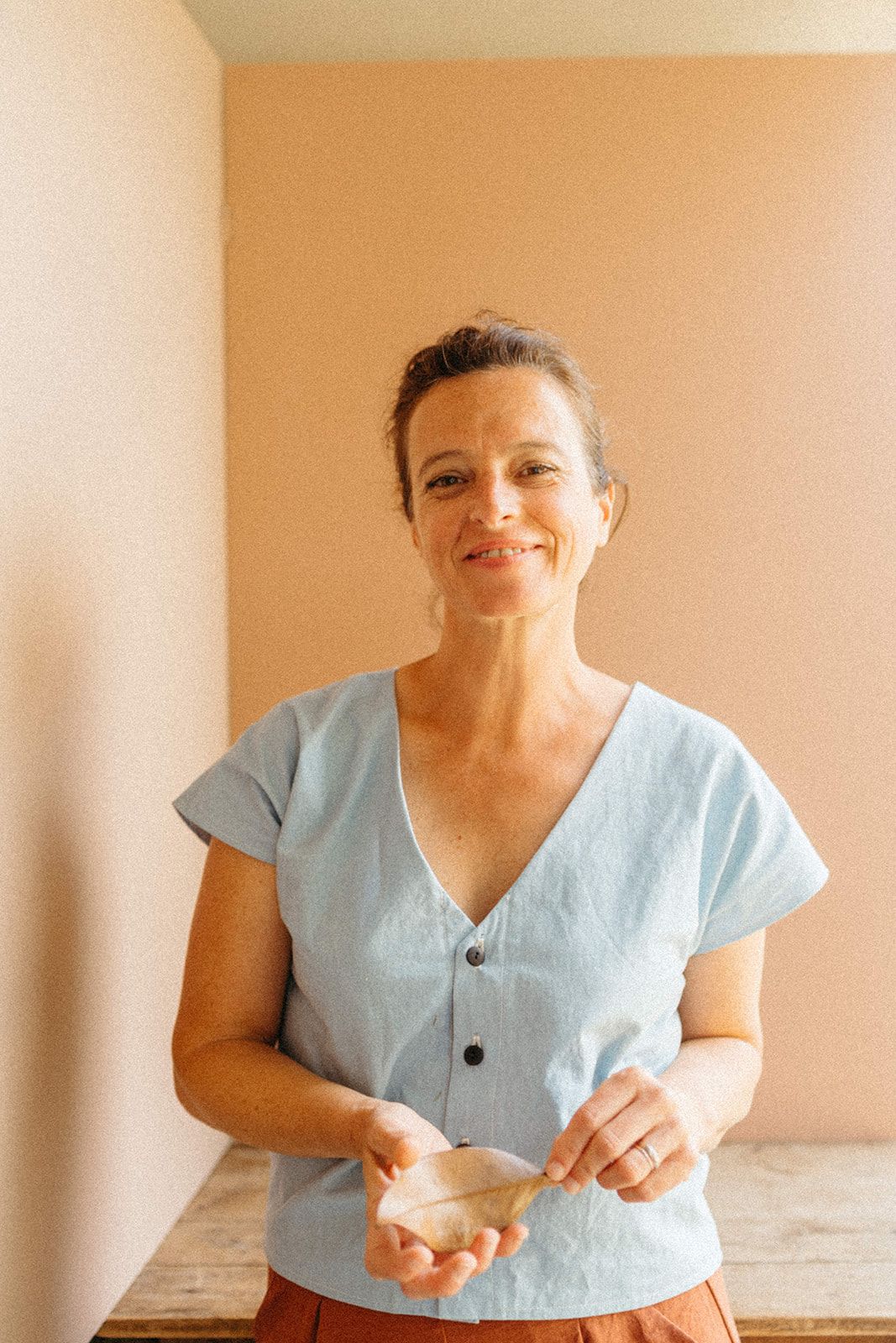 Elle travaille depuis son atelier à domicile, où elle reçoit ses clients.