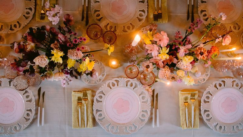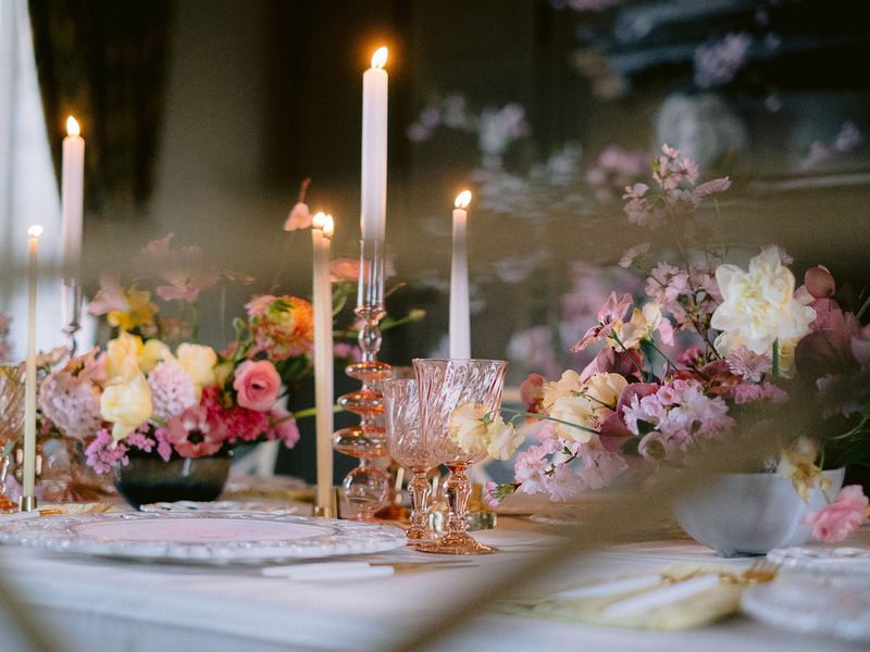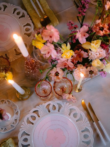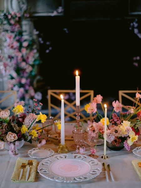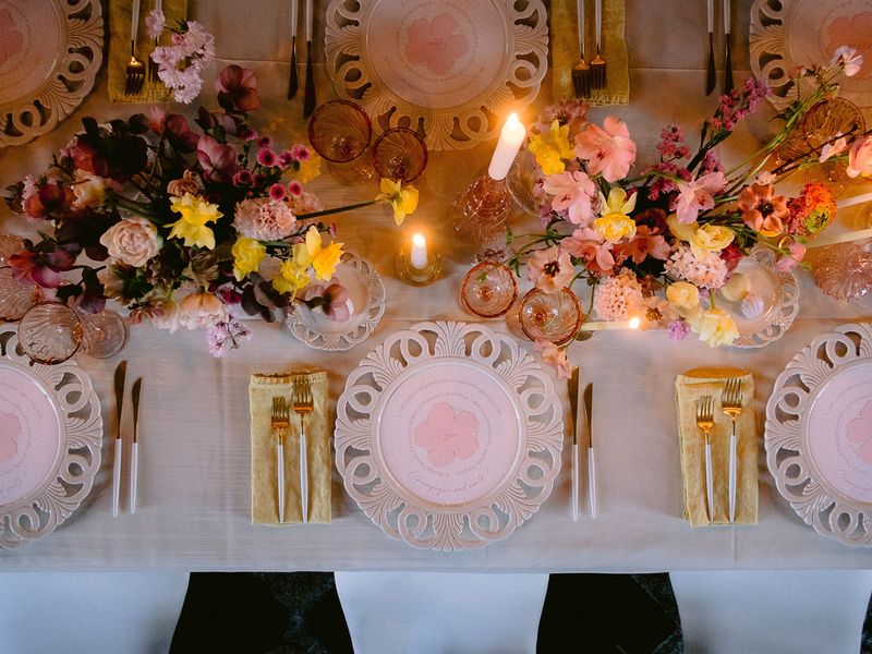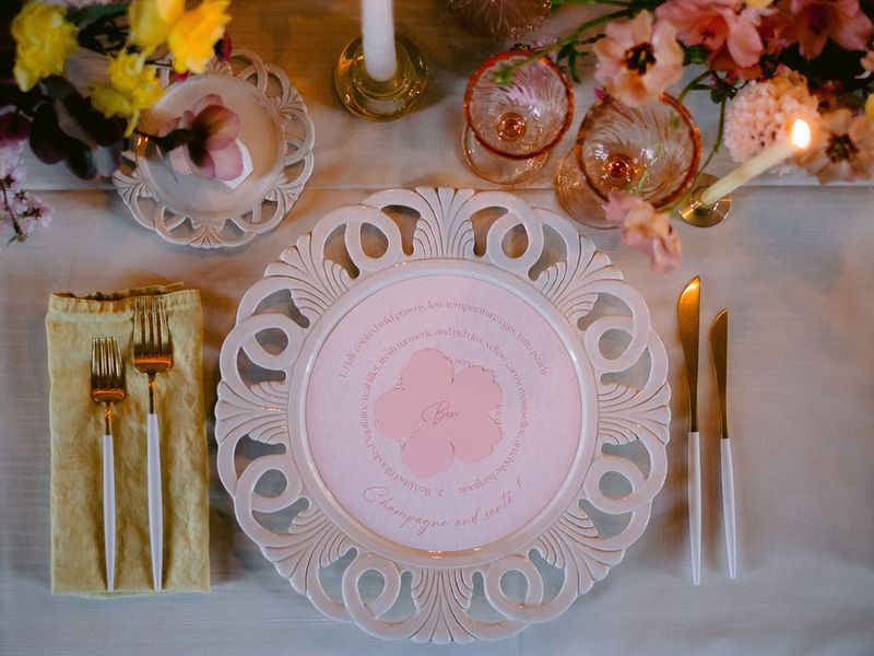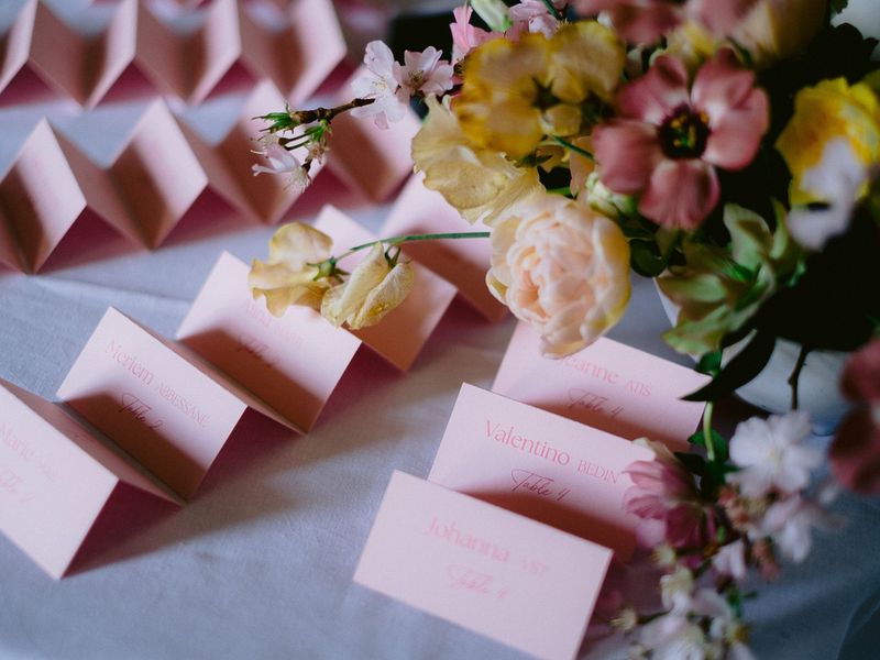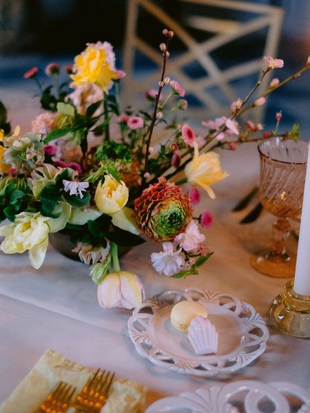 The starting point of my inspiration was cherry blossom, the most delicate and ephemeral spring bloom. The floral palette was declined in shades of pinks and soft yellows.