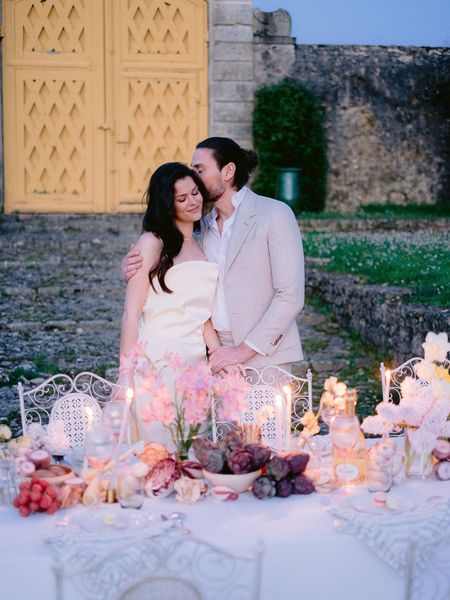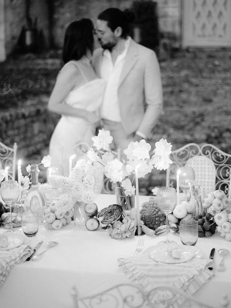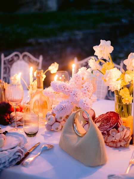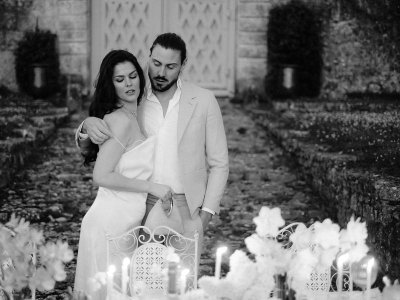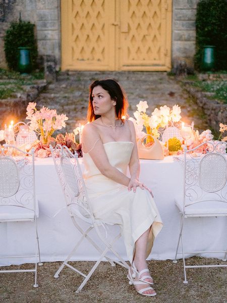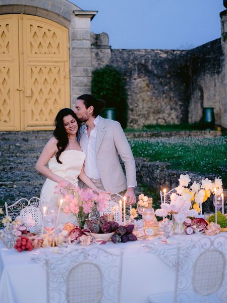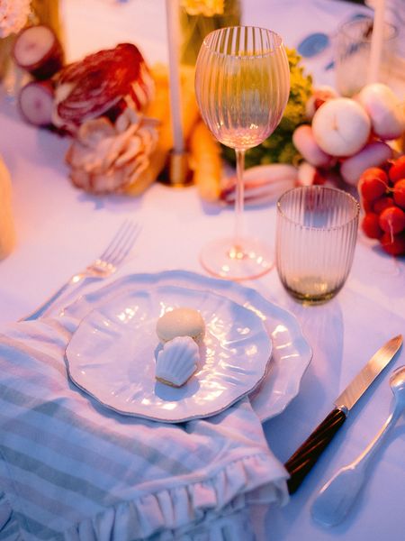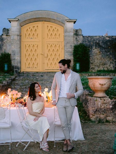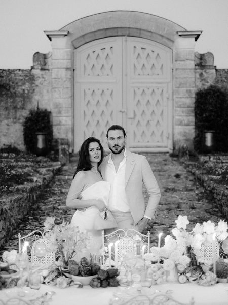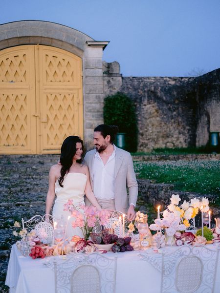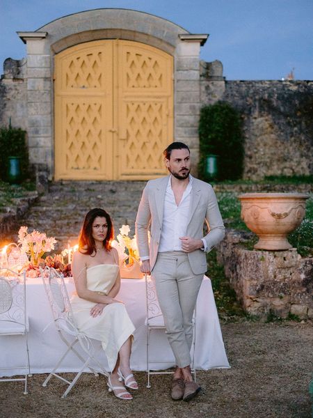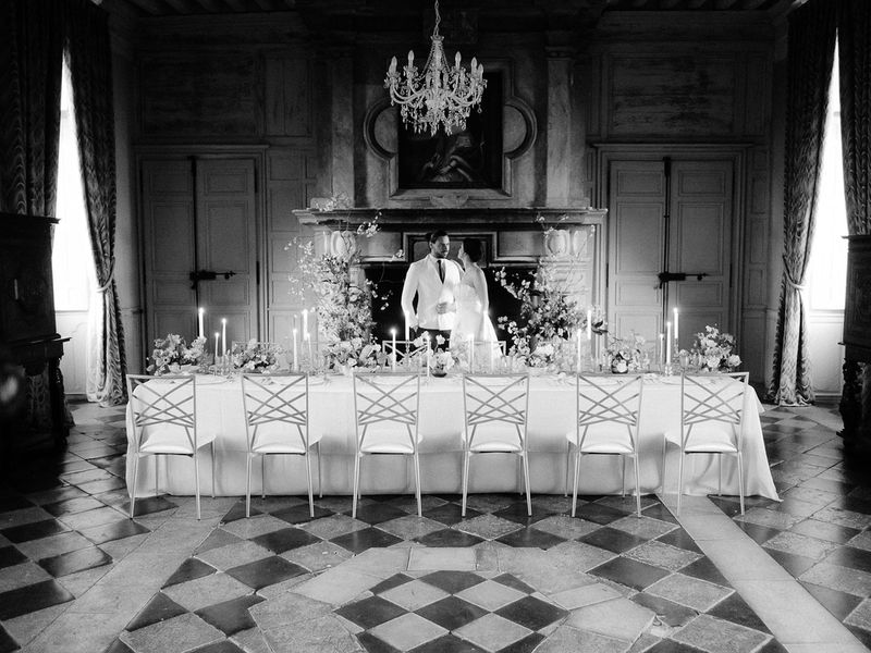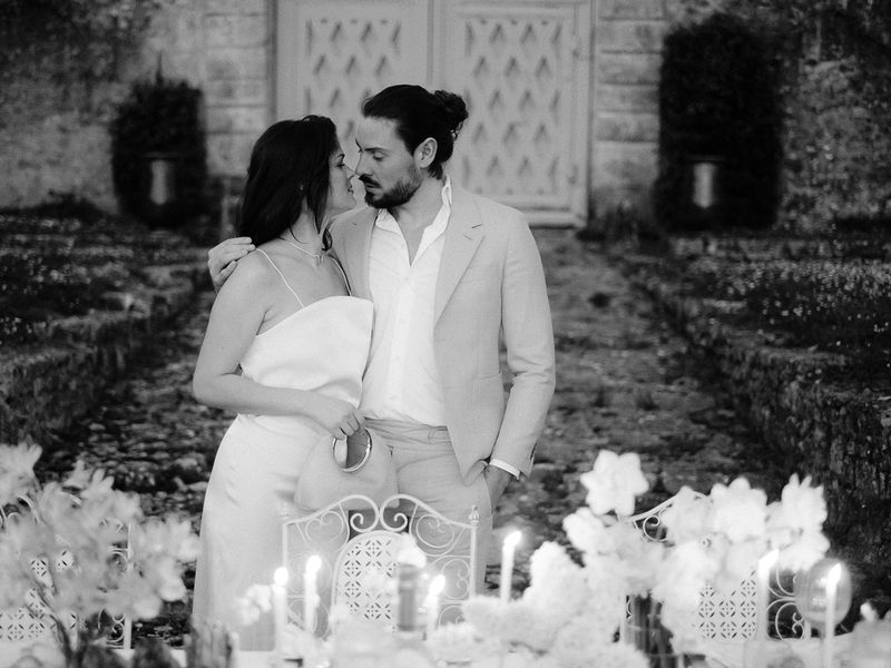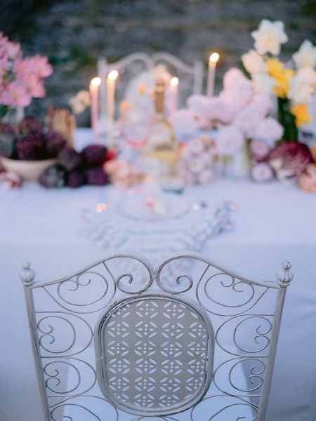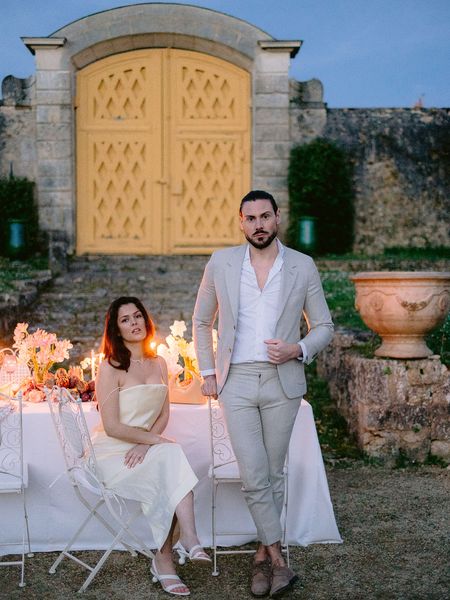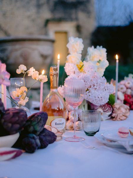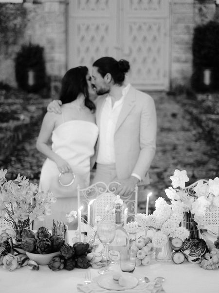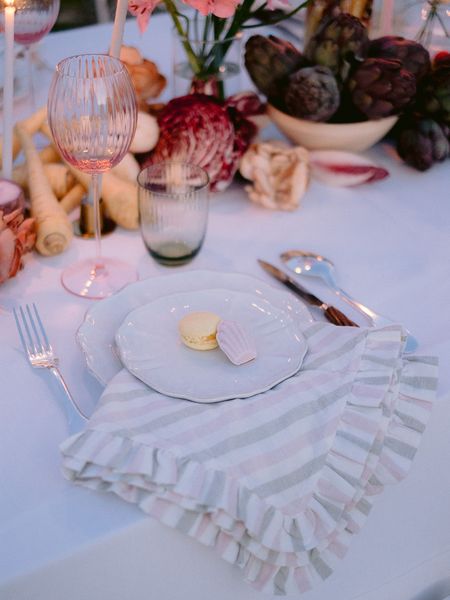 We wanted to transcribe timeless French elegance & chic, but in a modern and fresher way. Hence the idea of this al fresco rehearsal dinner, more casual, with a ‘farm to table’ floral design including veggies along with spring flowers.