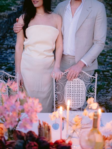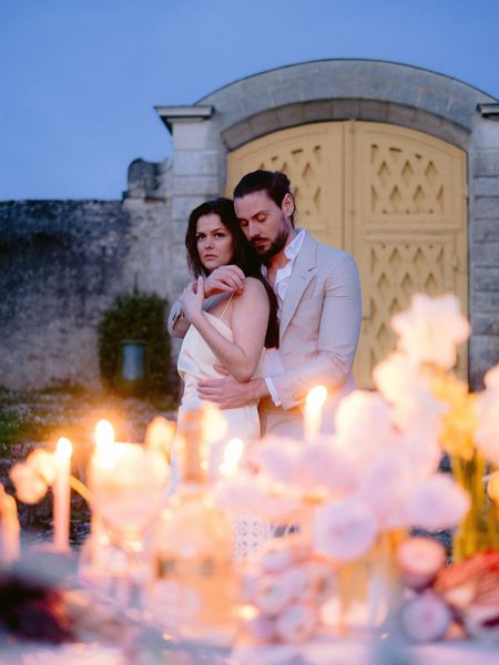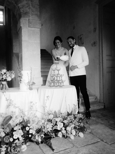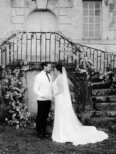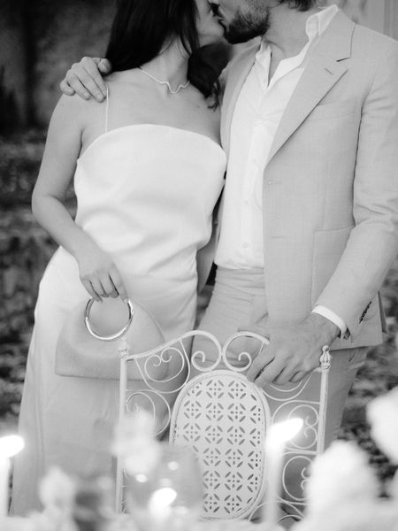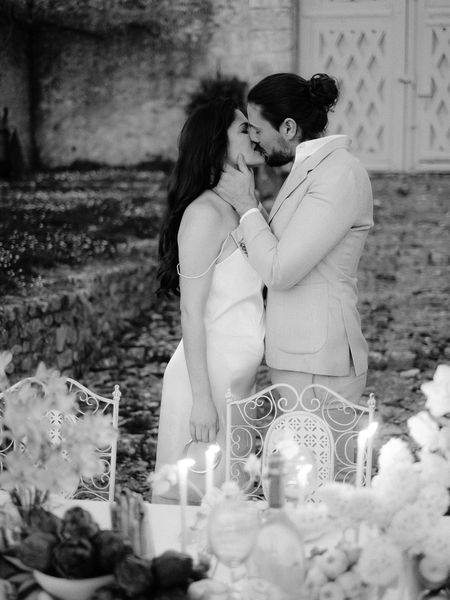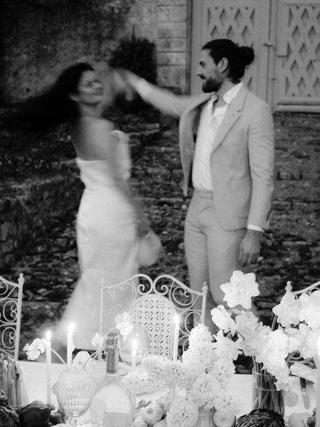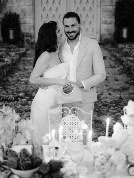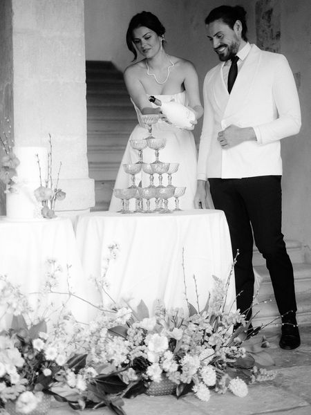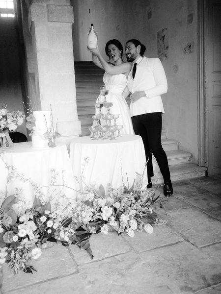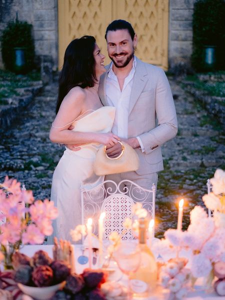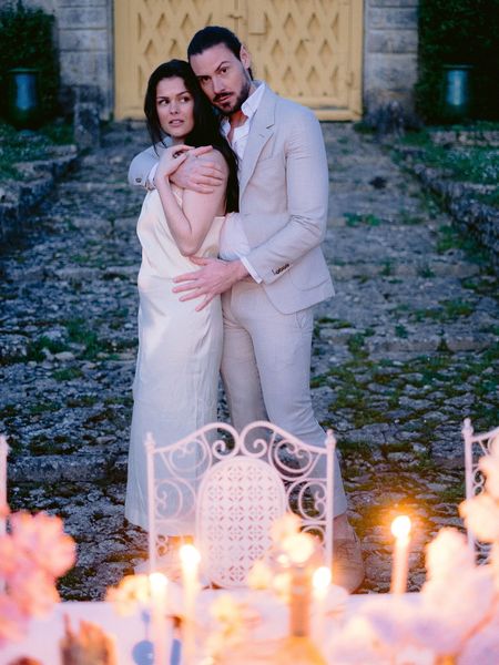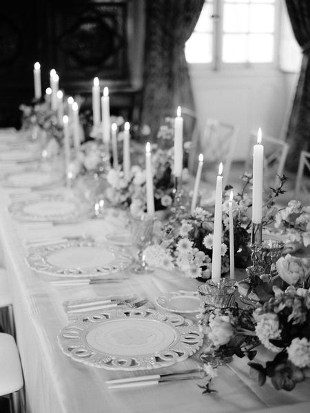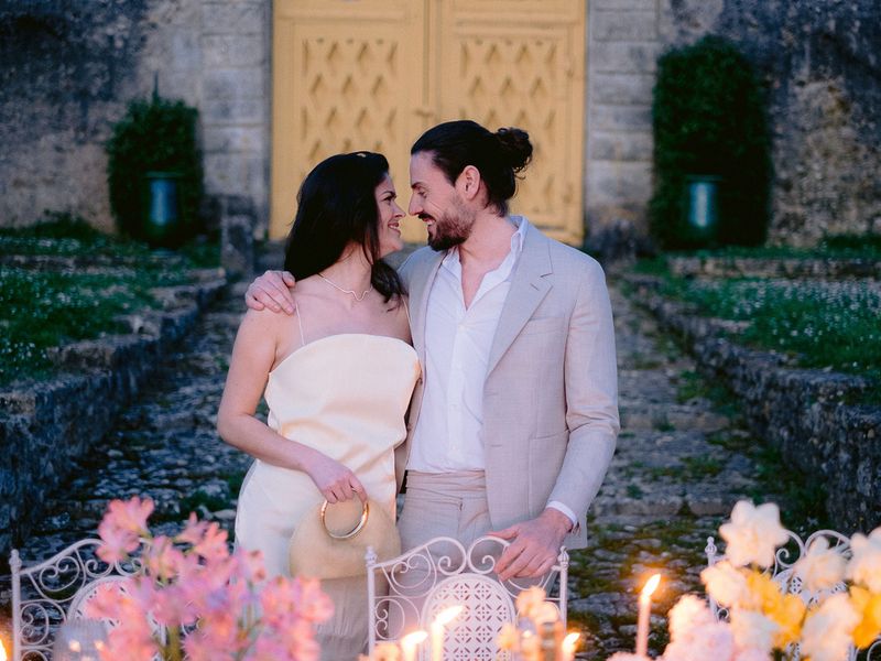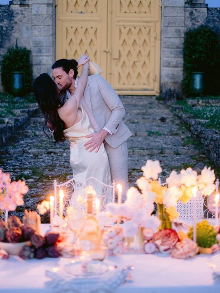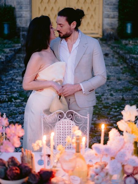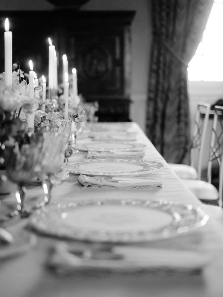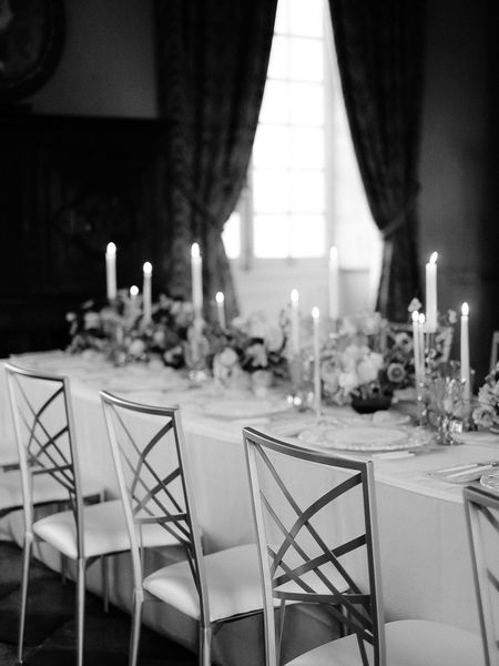 We wanted to transcribe timeless French elegance & chic, but in a modern and fresher way. Hence the idea of this al fresco rehearsal dinner, more casual, with a ‘farm to table’ floral design including veggies along with spring flowers.