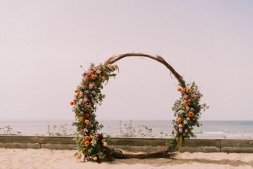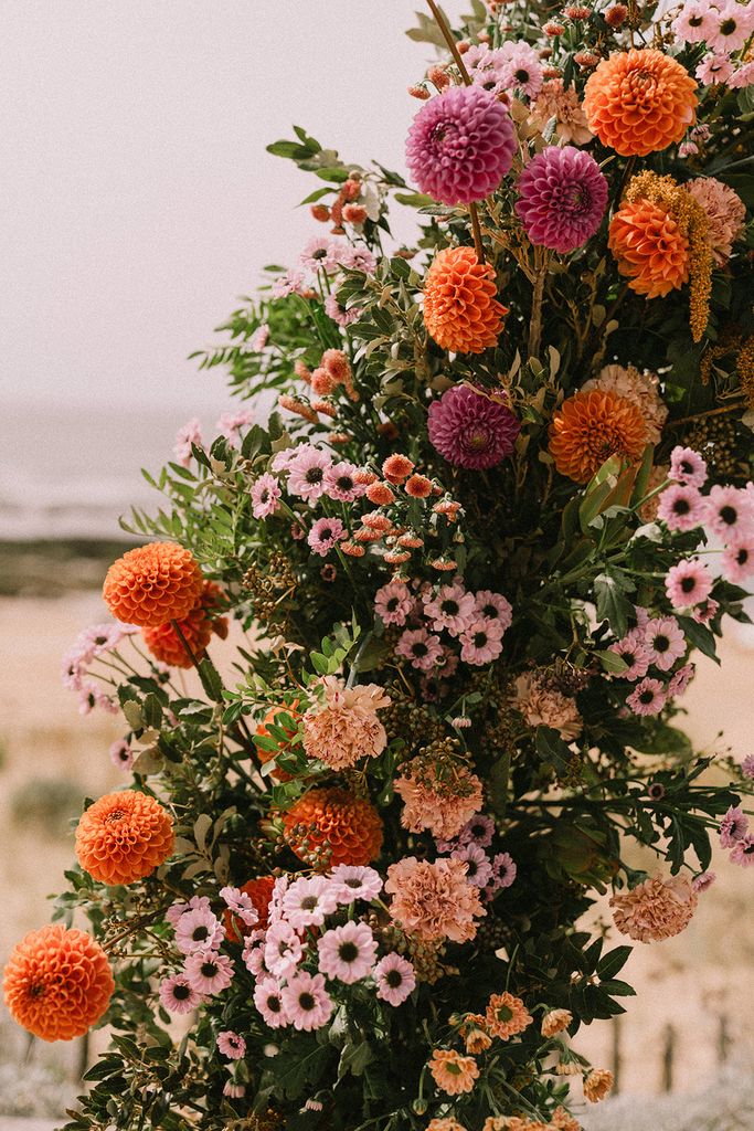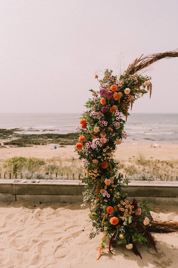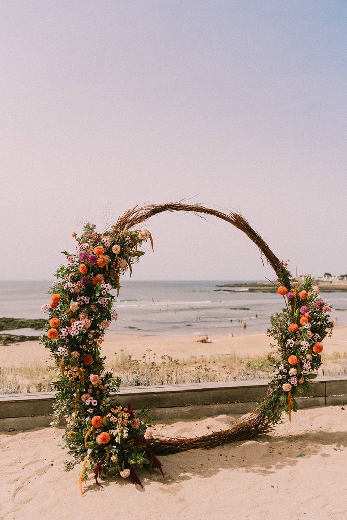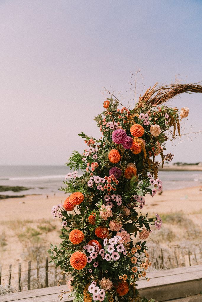 I already had the pleasure to decorate the round arch from l’Atelier d’Hiris on this lovely fall wedding, I was thrilled to flower it again for this summery installation (in the full sun but the view was worth it!)
