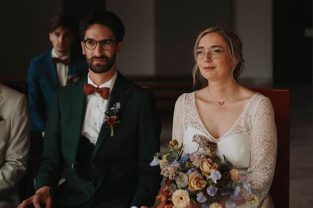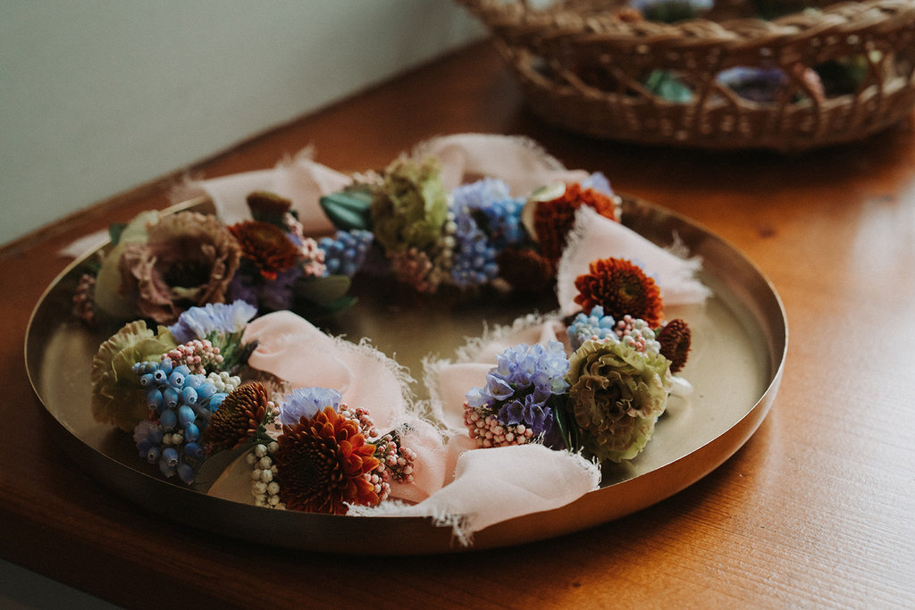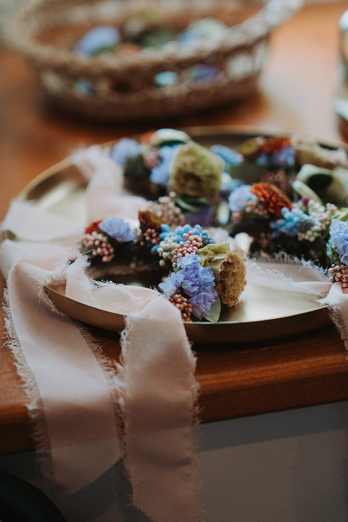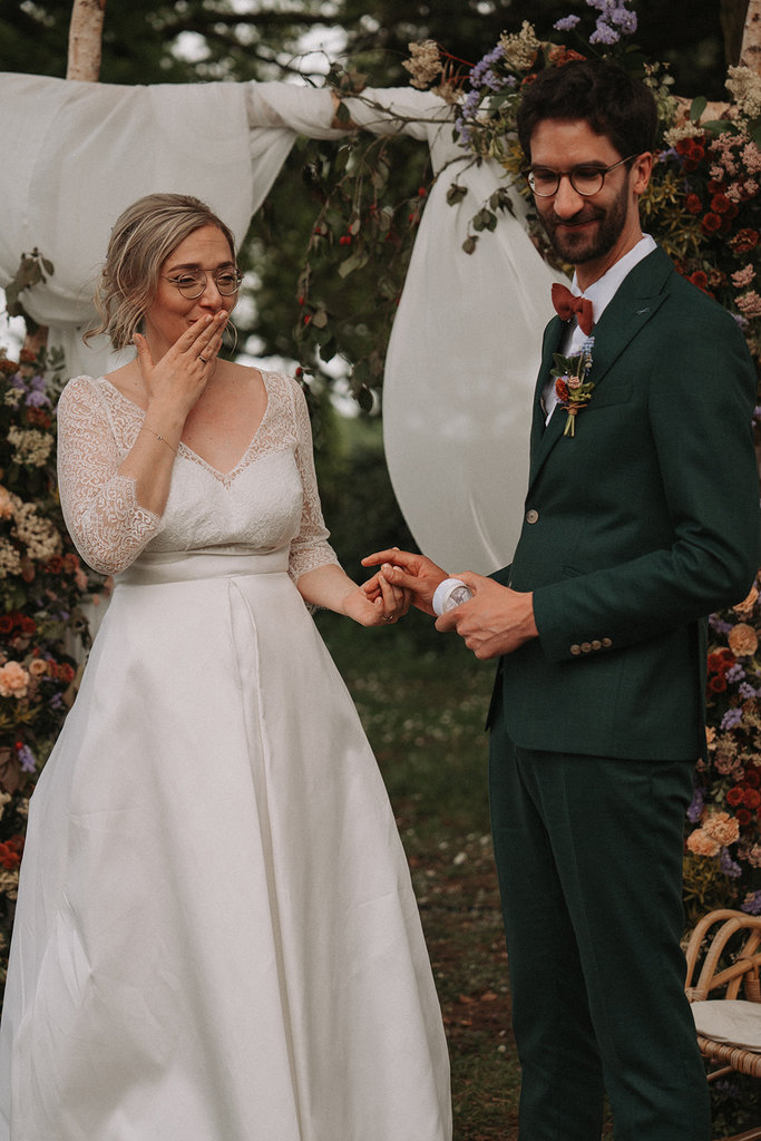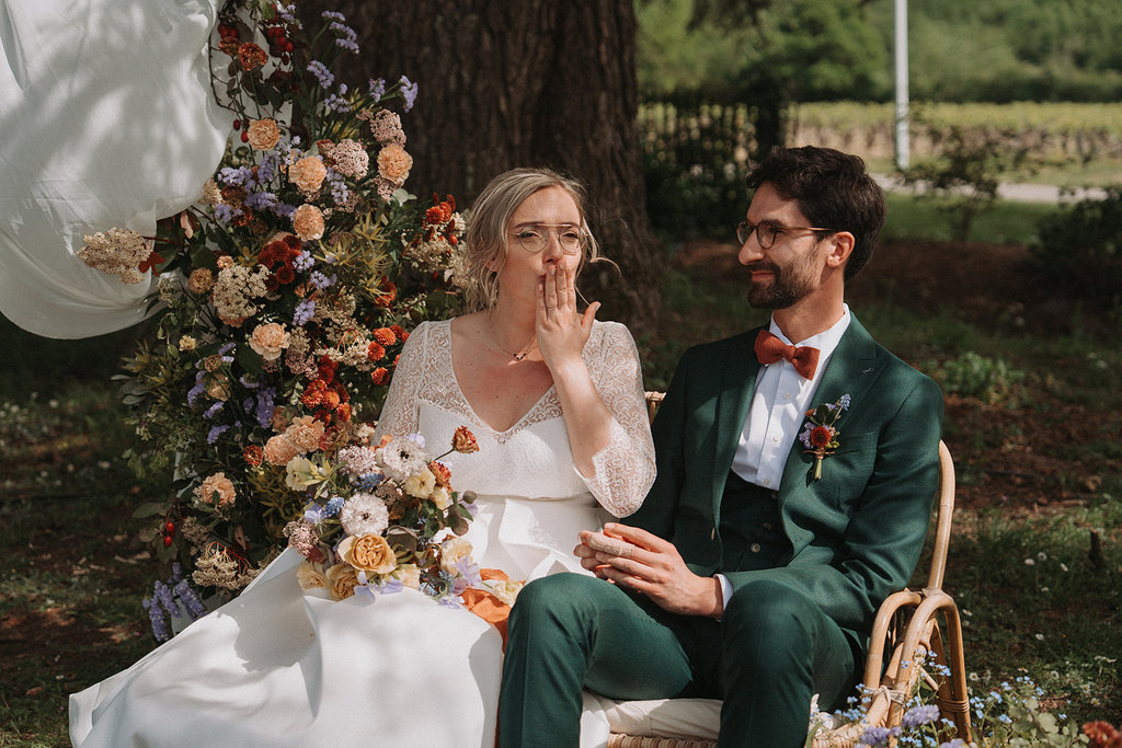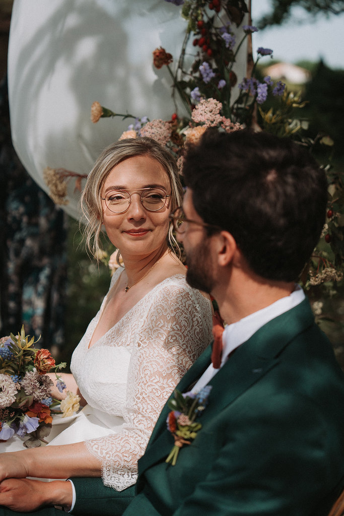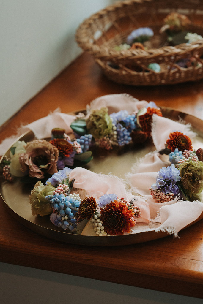 Lilac, hints of blue, brown / terracotta, spring mustard greens… a facetted color mix full of softness to celebrate this day of joy.