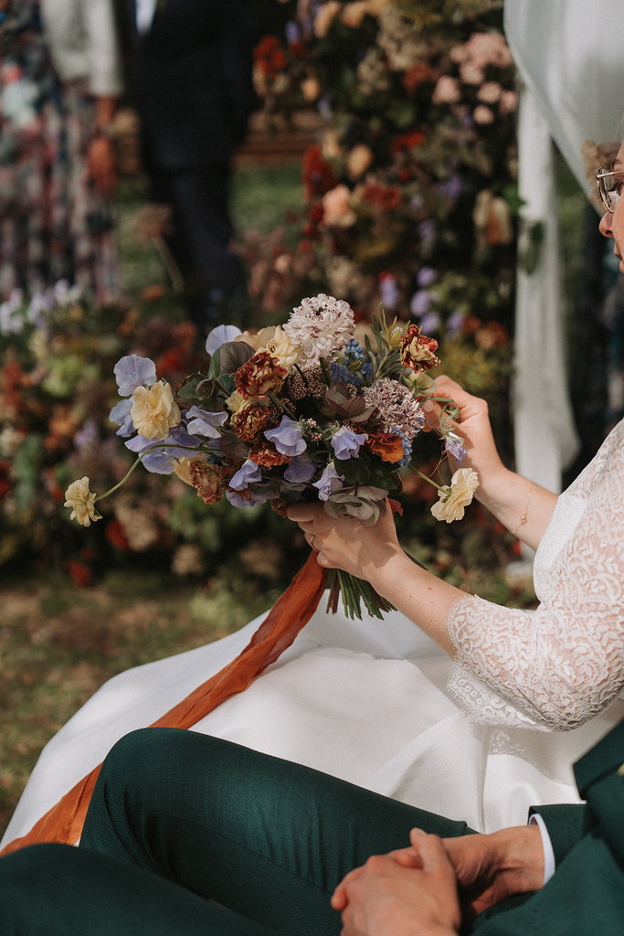 ” Marie is an extraordinary and very friendly florist! We trusted her with our wedding, giving her carte blanche, and what a great idea that was! The arrangements were sublime and magnificent!”