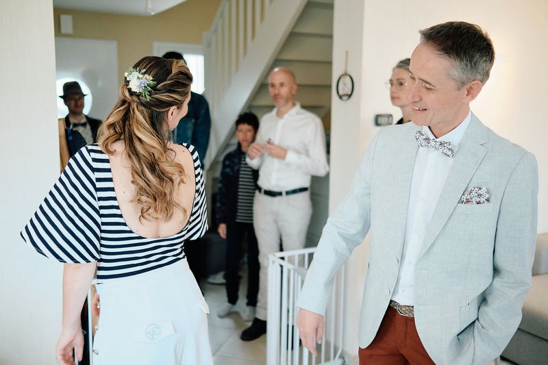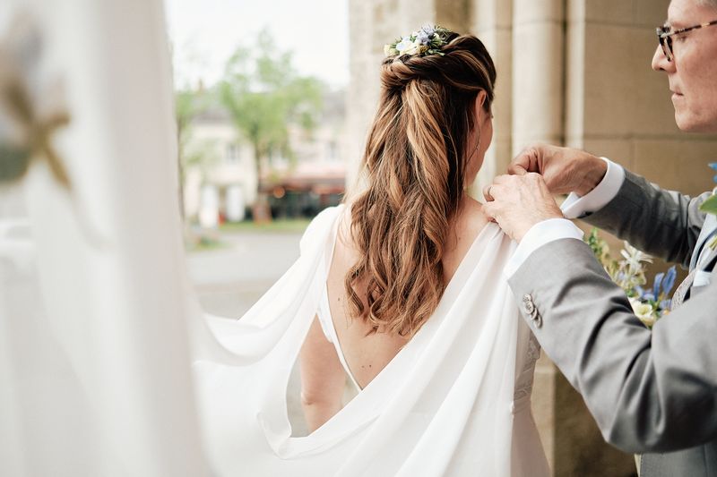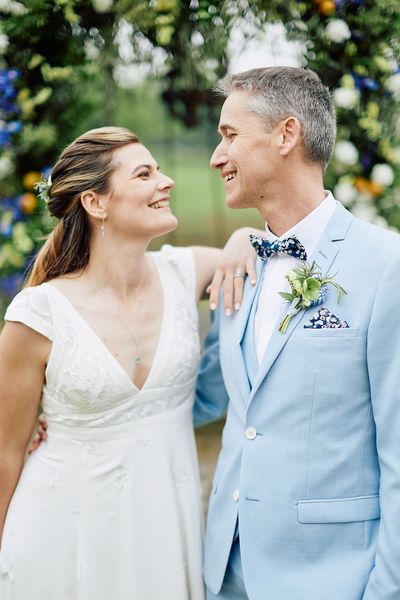 “We contacted Marie to create the floral decoration of our wedding. Captivated and inspired by our story, she came up with several floral arrangements based on our theme: from South to West. I am in awe of all the work that went into it. From the initial sketches to the compositions, moving them around to optimize their display, and setting up teverything, it was a creative endeavor, but also quite a workout! Thank you for putting your passion to work for our happiness.”