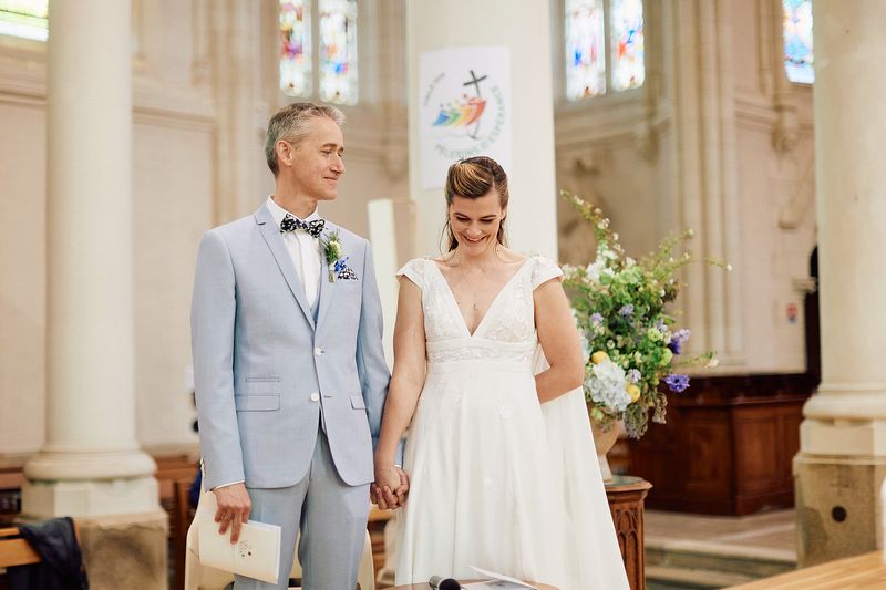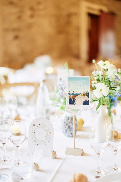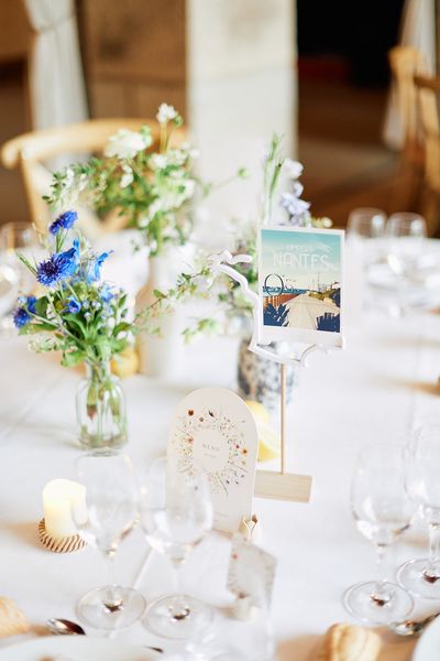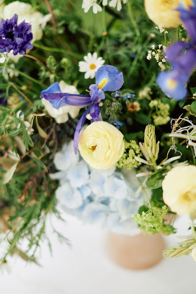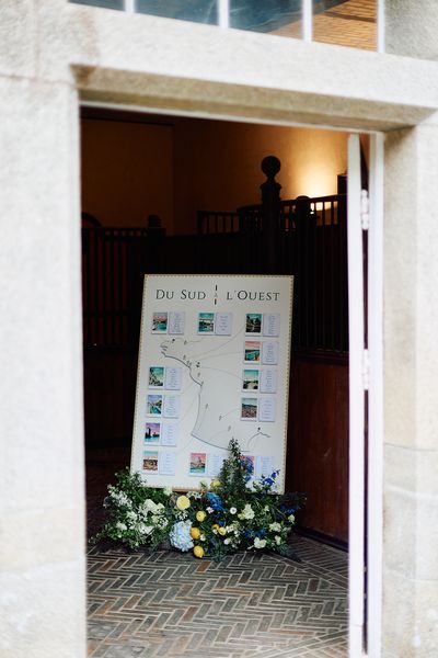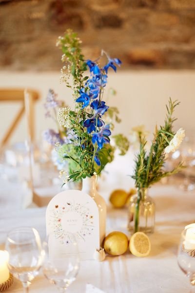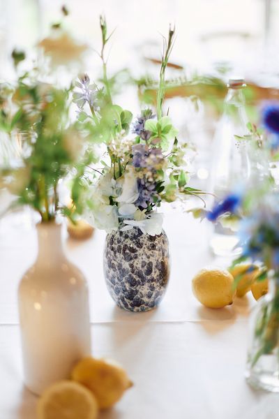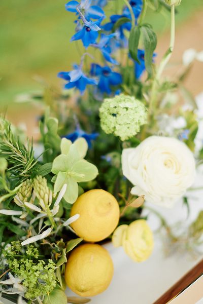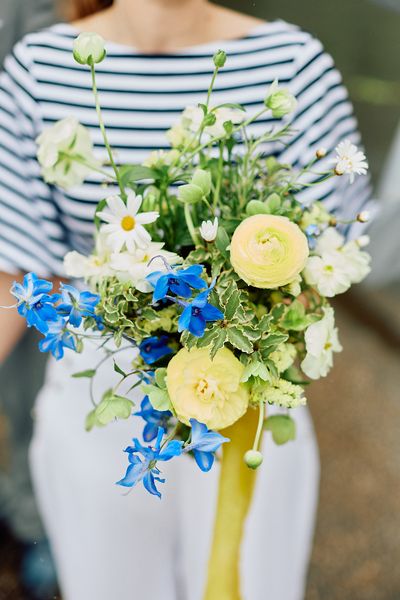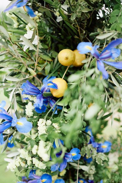 Constance & Yoann wanted for their spring wedding something reminding their origins between Brittany & South of France. I chose a palette around yellow & blue, full of seasonal blooms from my local growers. And a few lemons here and there to complete the picture! 🍋
