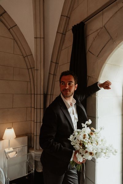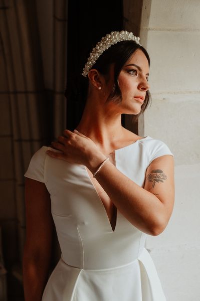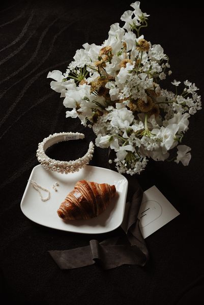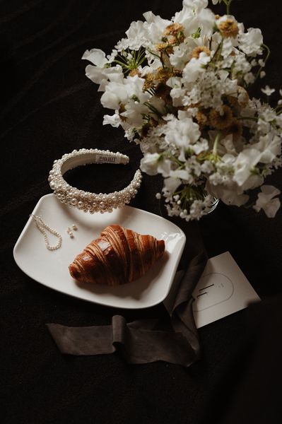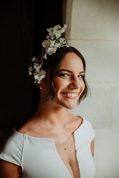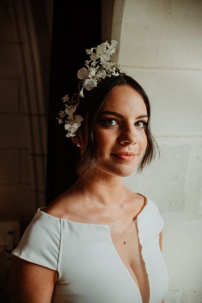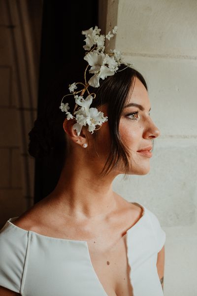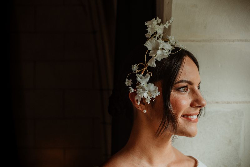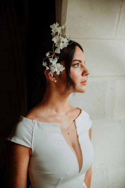 For the bridal bouquet & the hair floral jewel, I went for elegance and minimalism with delicate and simple creations.