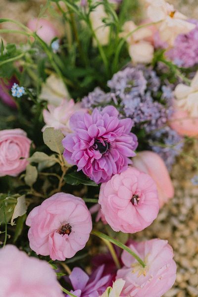Le tout avec une jolie sélection de fleurs de printemps : lilas, renoncules, tulipes, myosotis… sourcés auprès de mes producteurs locaux.