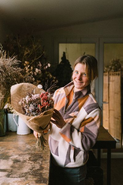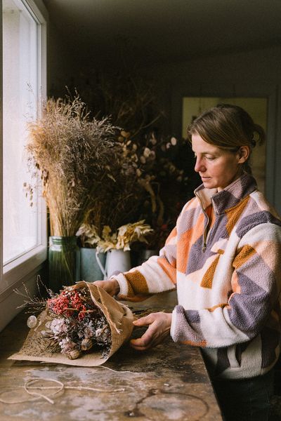 Cécile est floricultrice dans le Finistère, elle est venue à l’atelier pour 3 jours de formation sur mesure pour perfectionner ses techniques fleuriste dans le but de diversifier son activité.