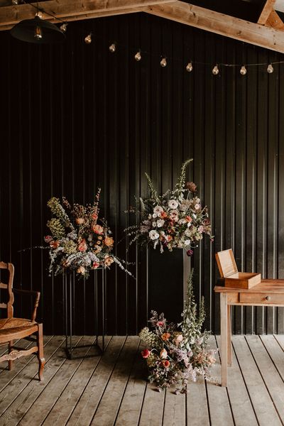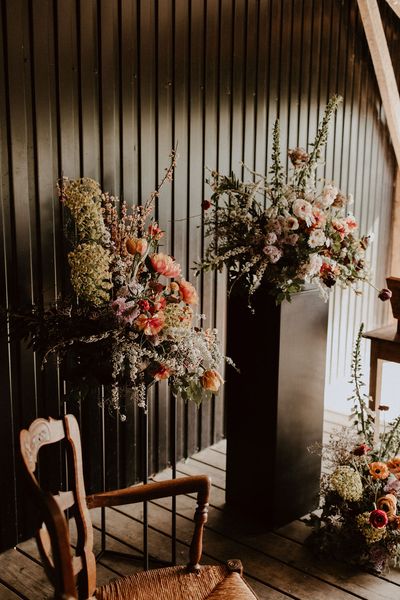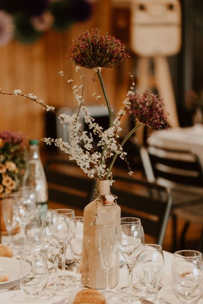 Les compositions étaient magnifiques, originales et poétiques. Marie porte également des valeurs écologiques qui nous sont chères (zéro déchets, pas d’utilisation de mousse florale). Pour notre cérémonie laïque elle a imaginé un décor en 3 compositions qui ont été réutilisables par la suite pendant le cocktail et le diner.