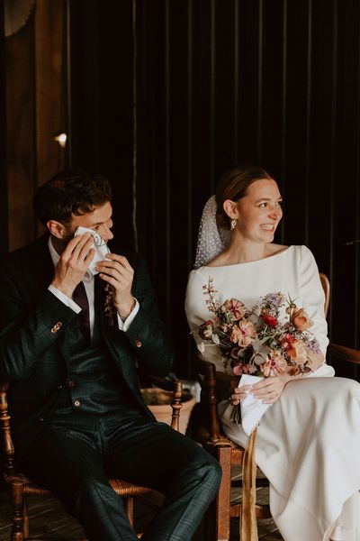 Leur inspiration: l’Ecosse, un pays qu’ils ont visité ensemble et qui fait partie de leur histoire commune. J’ai donc choisi une palette de couleurs tout en douceur, avec des touches de bruyère pour rappeler la lande, et une profusion de fleurs printanières sourcées en grande partie chez mes producteurs locaux.