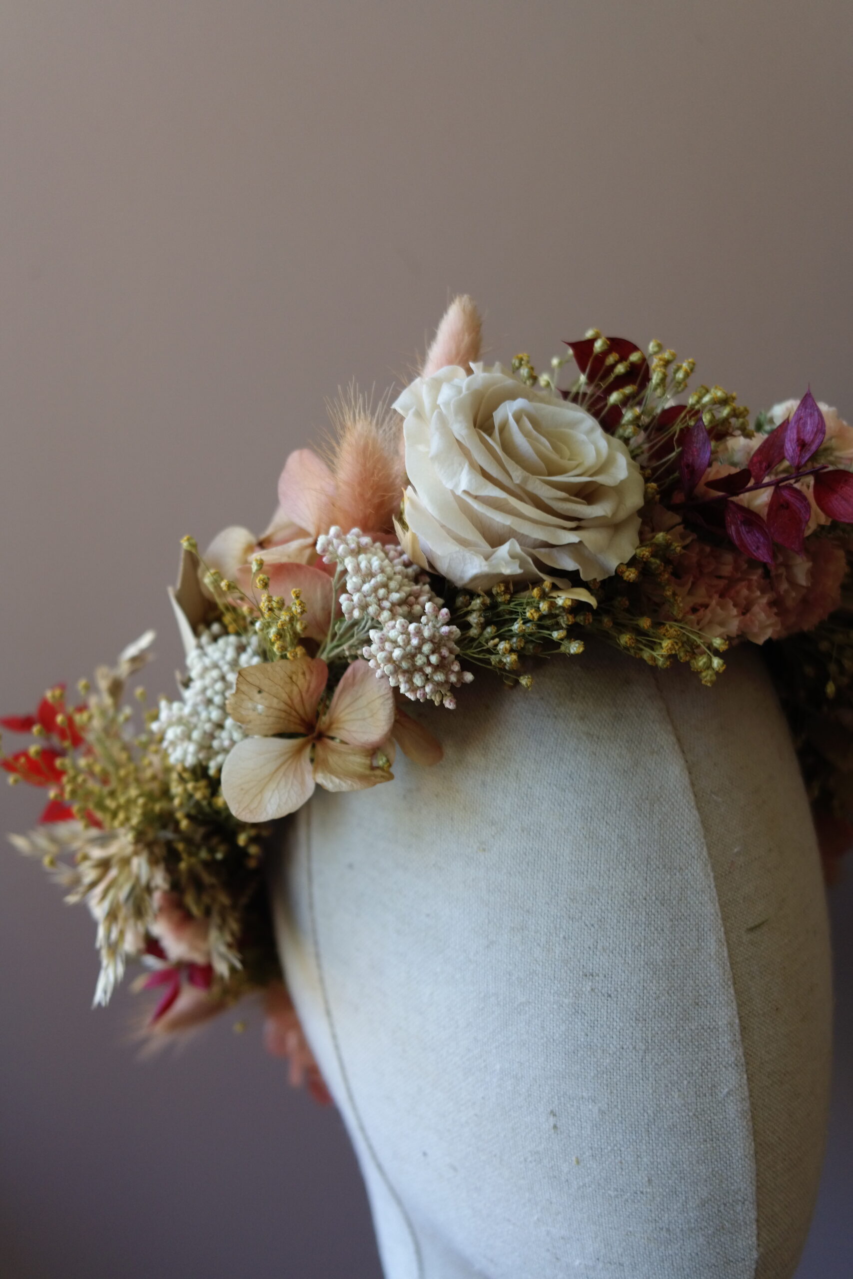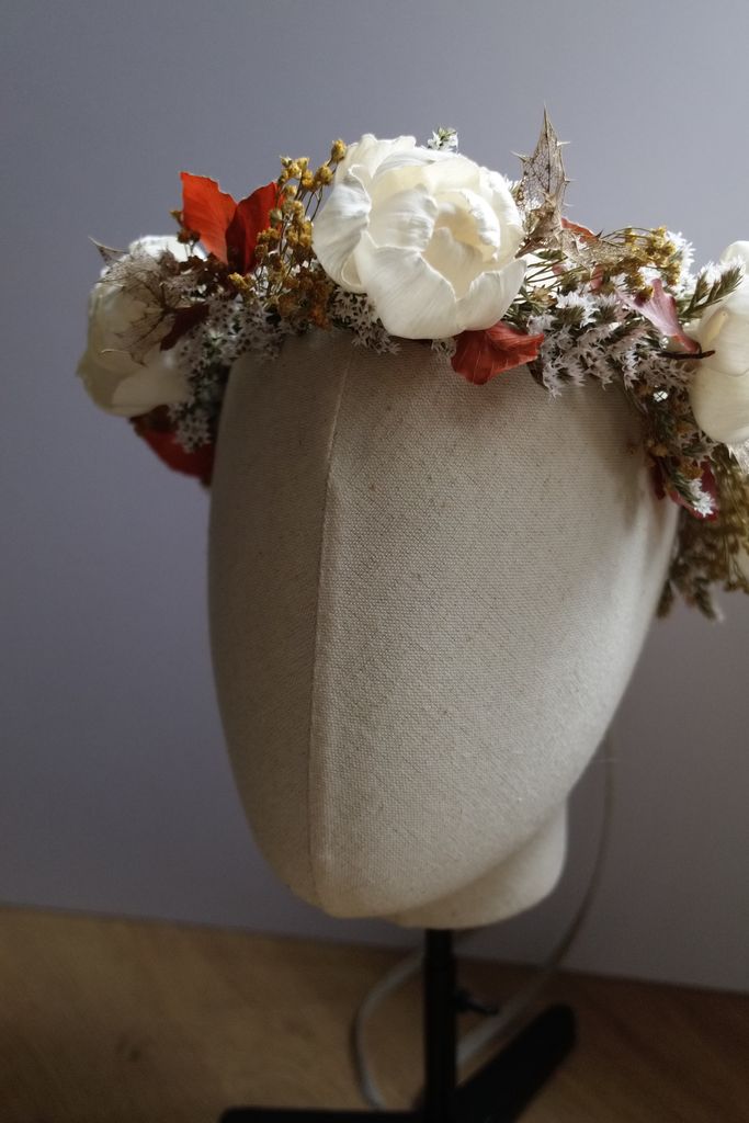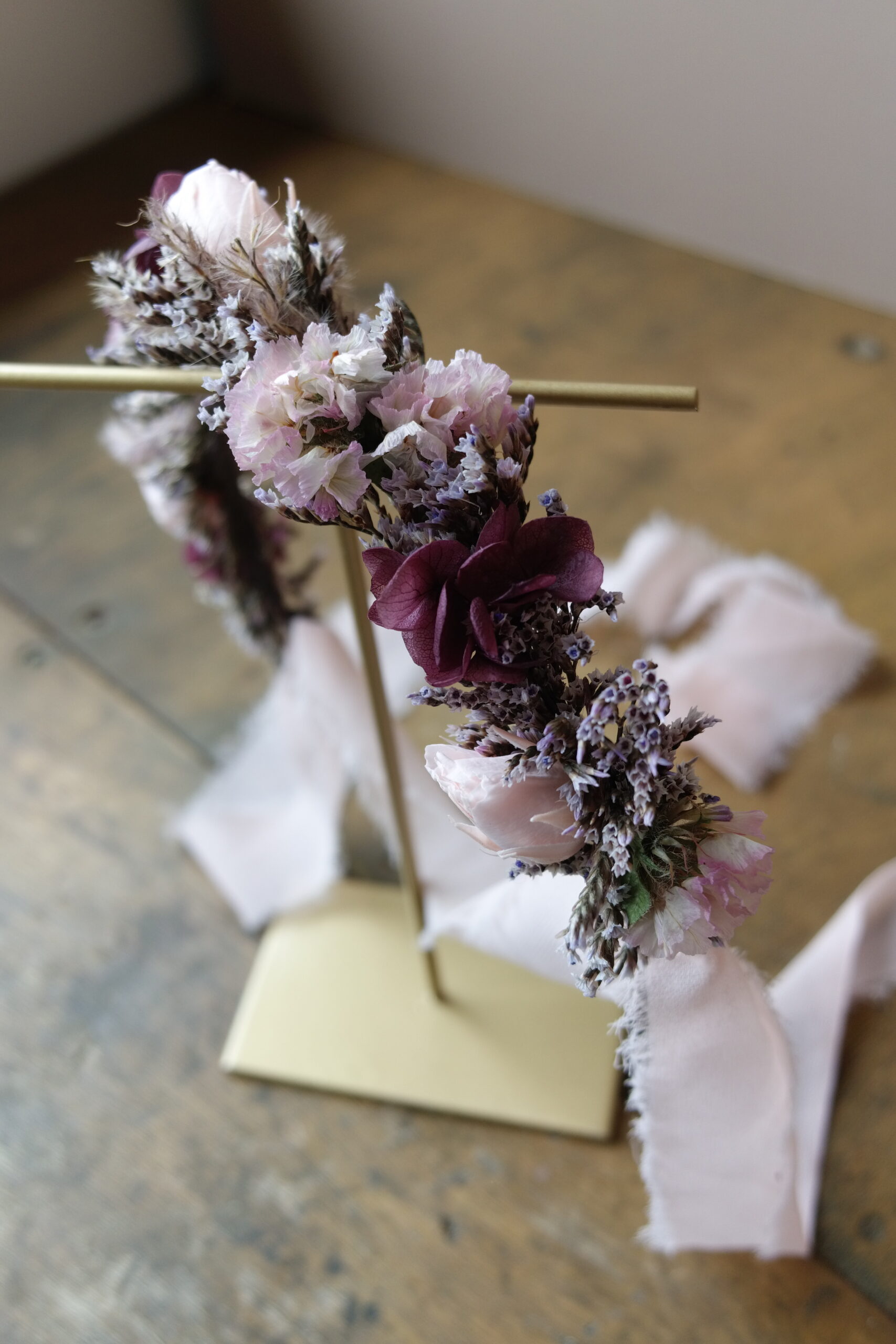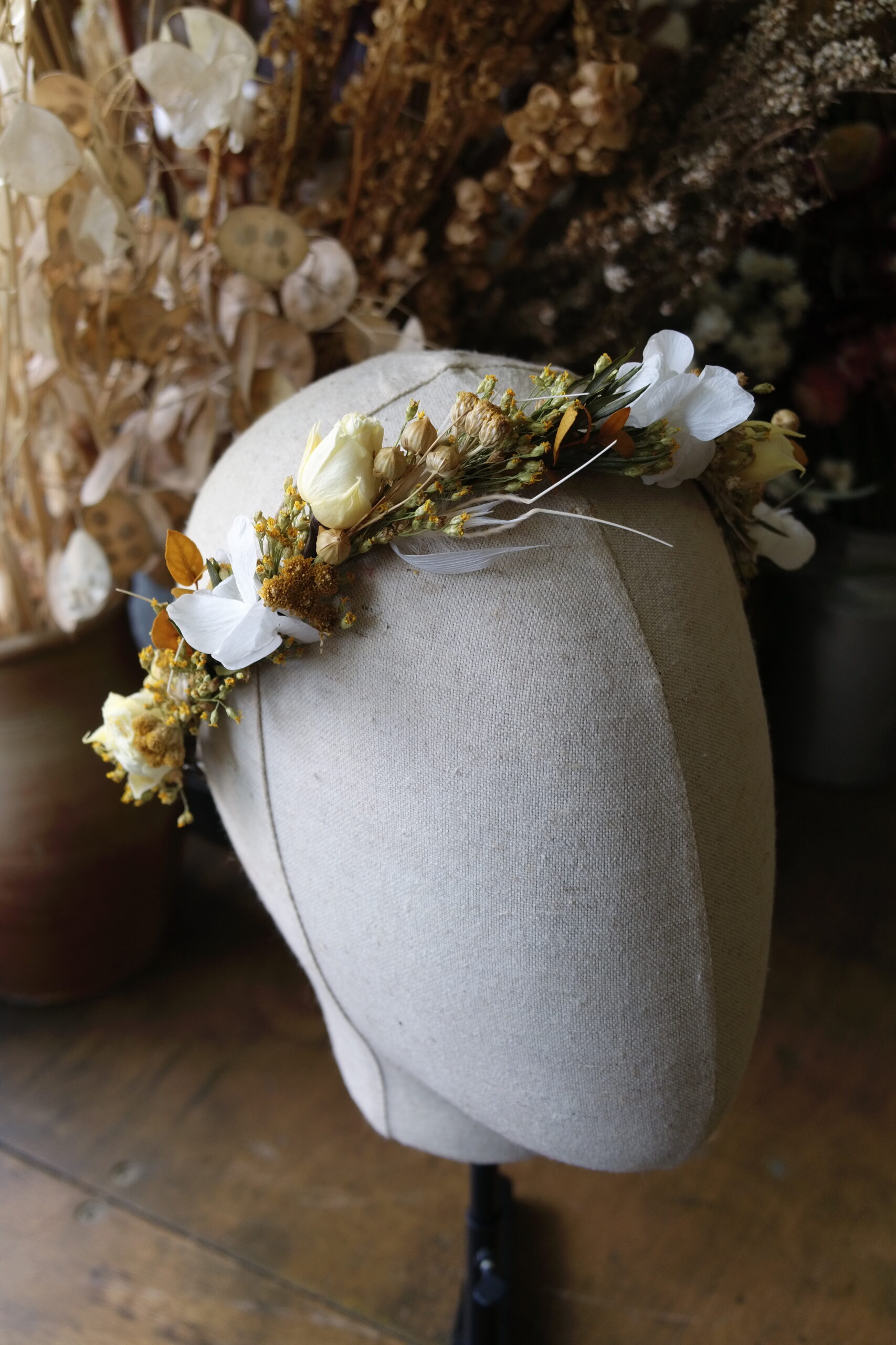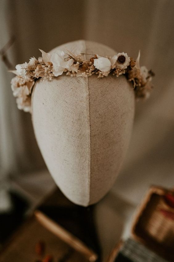 Une couronne en fleurs séchées élégante, travaillée dans un esprit naturel et raffiné. Fine ou plus volumineuse, à vous de choisir le style qui vous inspire!