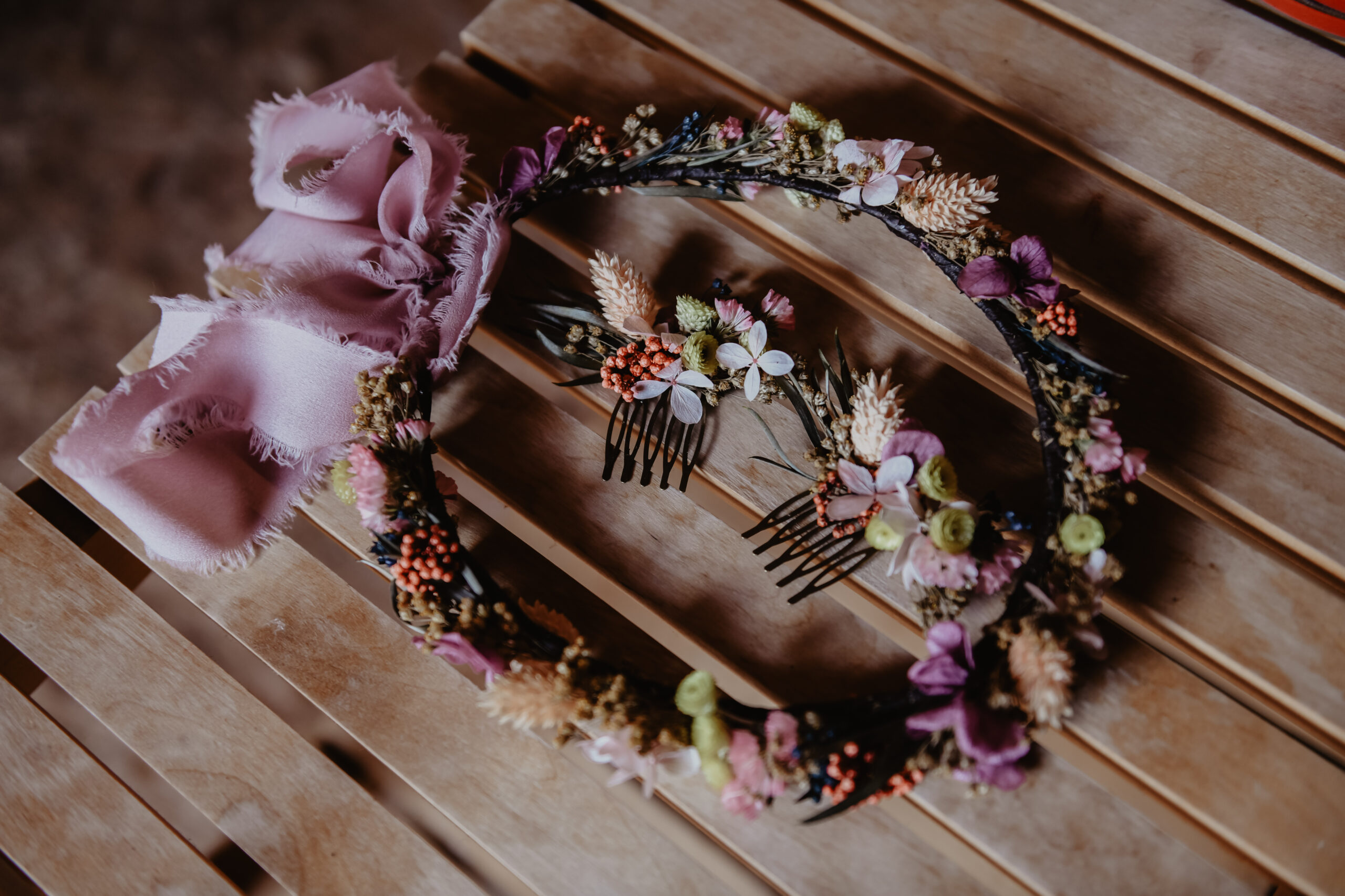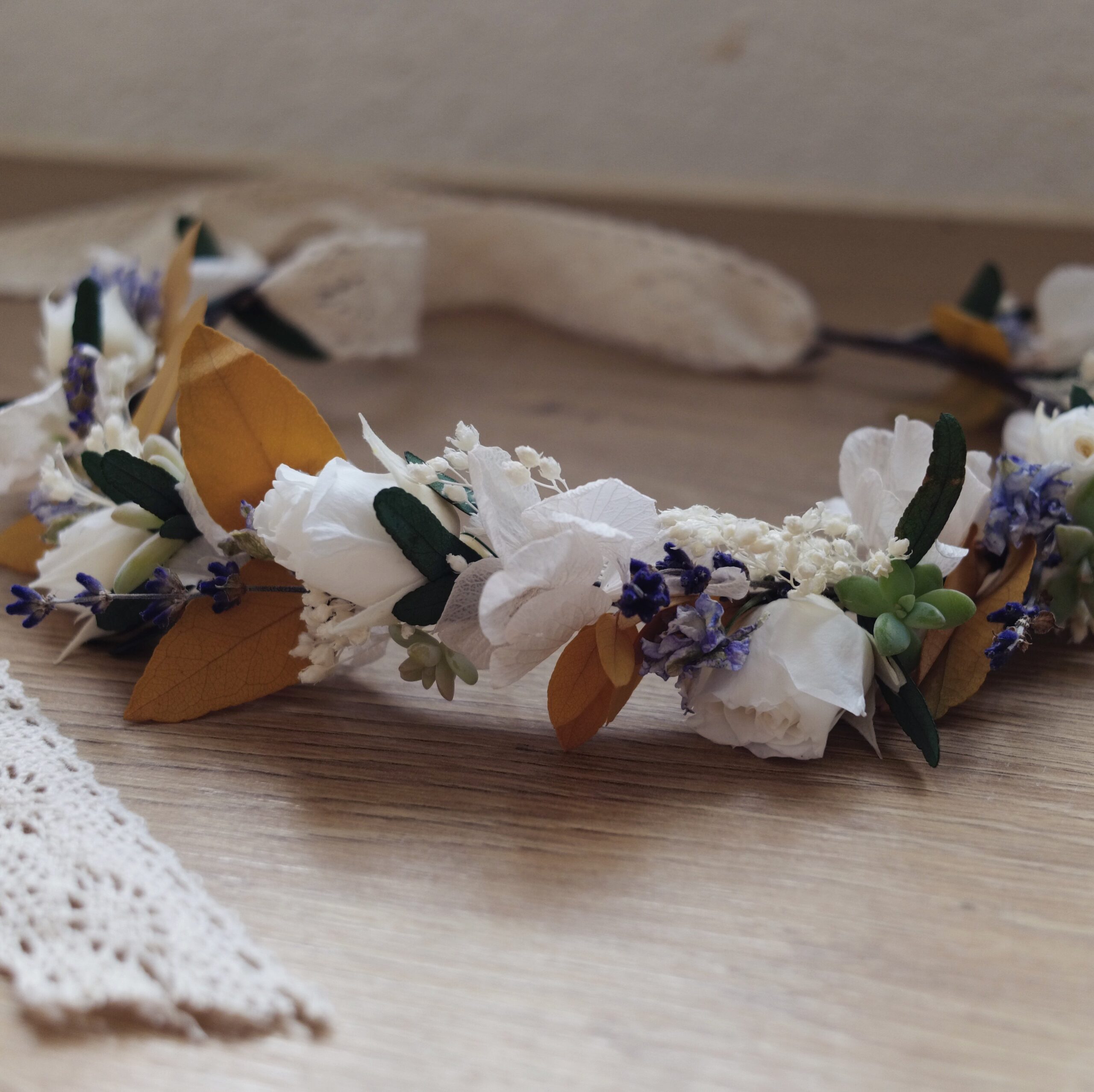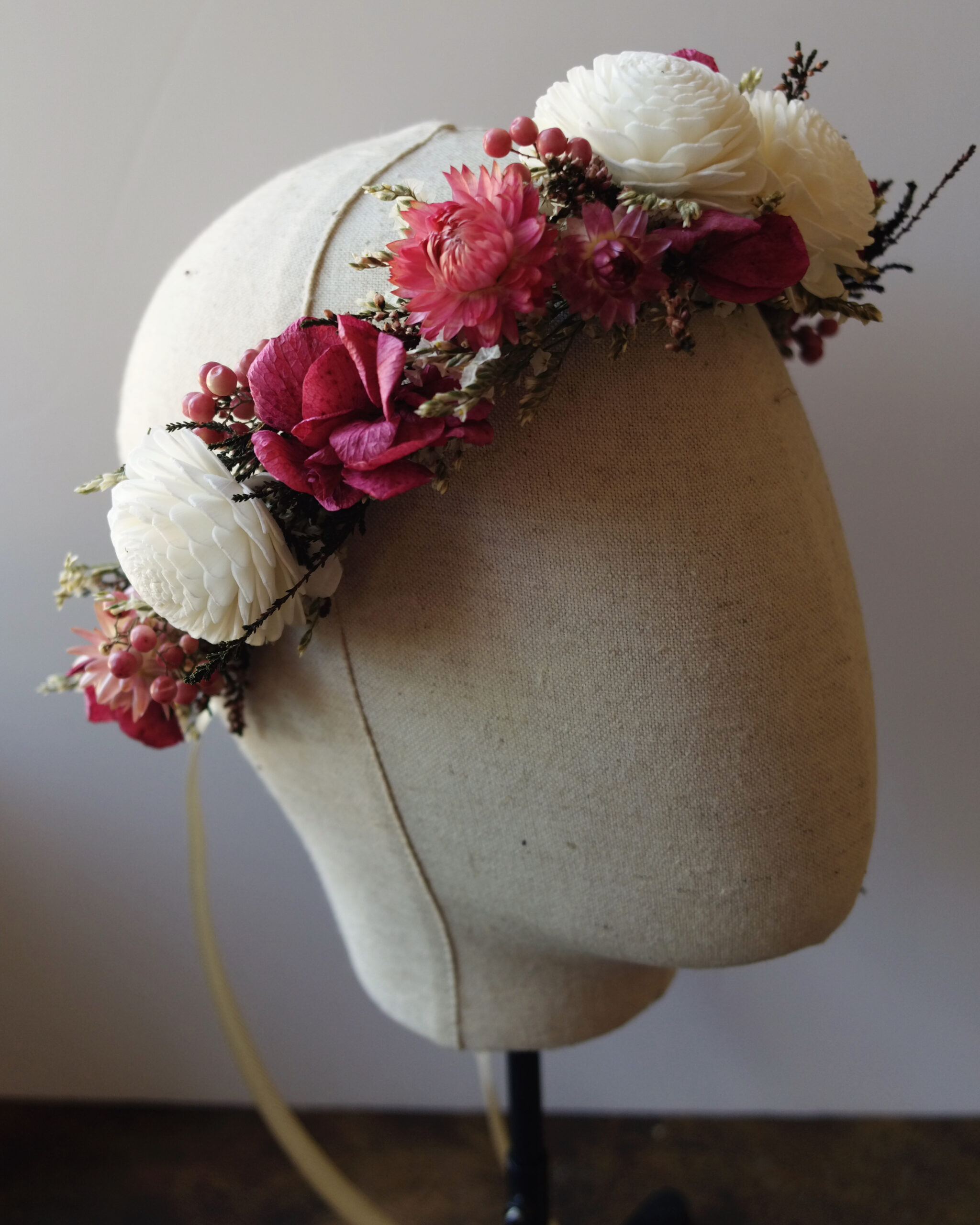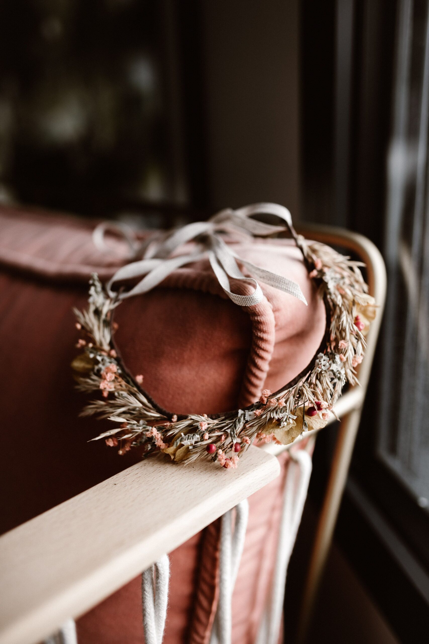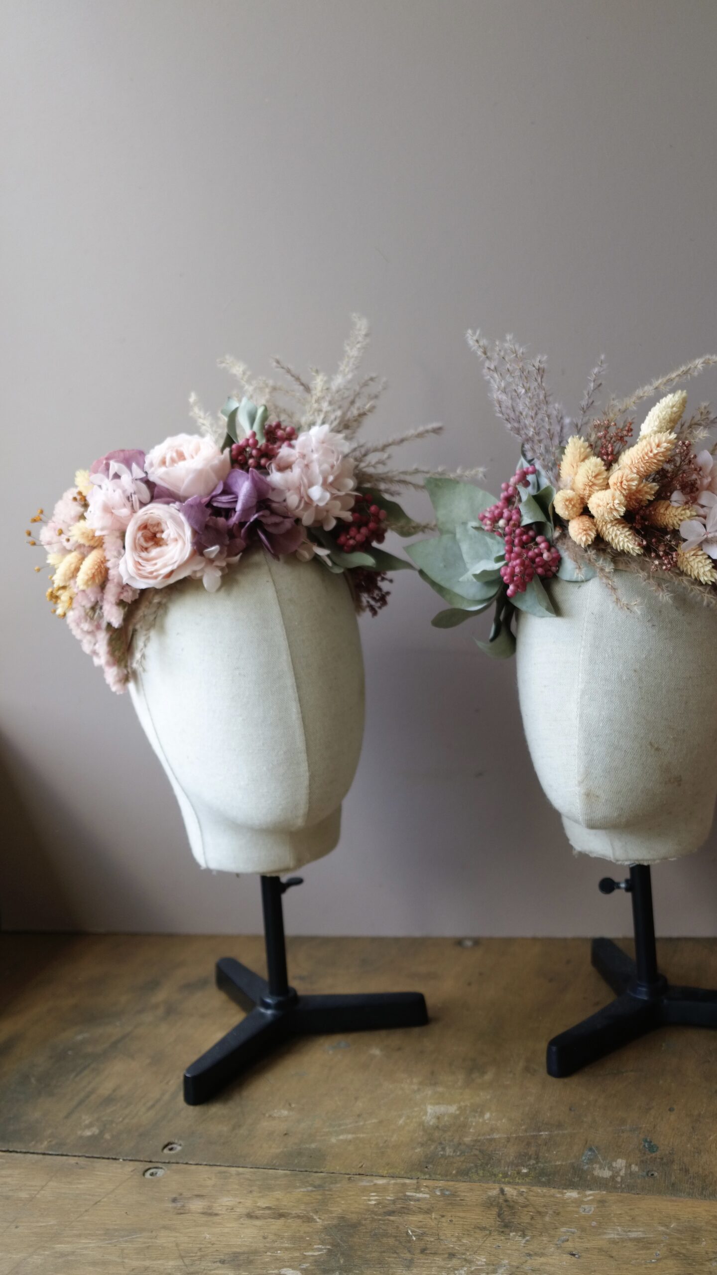 Une couronne en fleurs séchées élégante, travaillée dans un esprit naturel et raffiné. Fine ou plus volumineuse, à vous de choisir le style qui vous inspire!